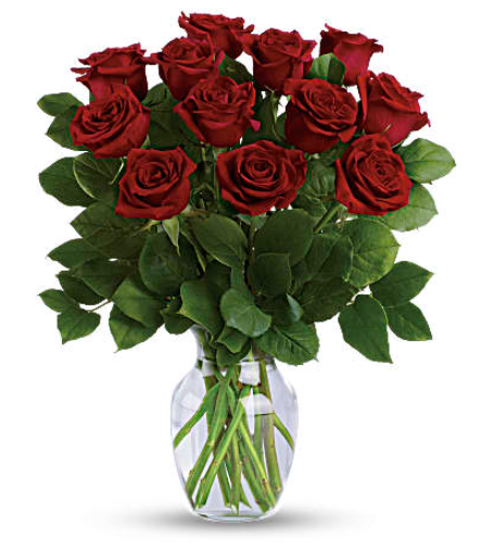 Romancing the rose! Nothing says "I love you" like a dramatic bouquet of ravishing long stemmed red roses, enveloped in a lush backdrop of fresh lemon leaves. Delivered in a classically graceful vase, it's an unforgettable romantic gesture.