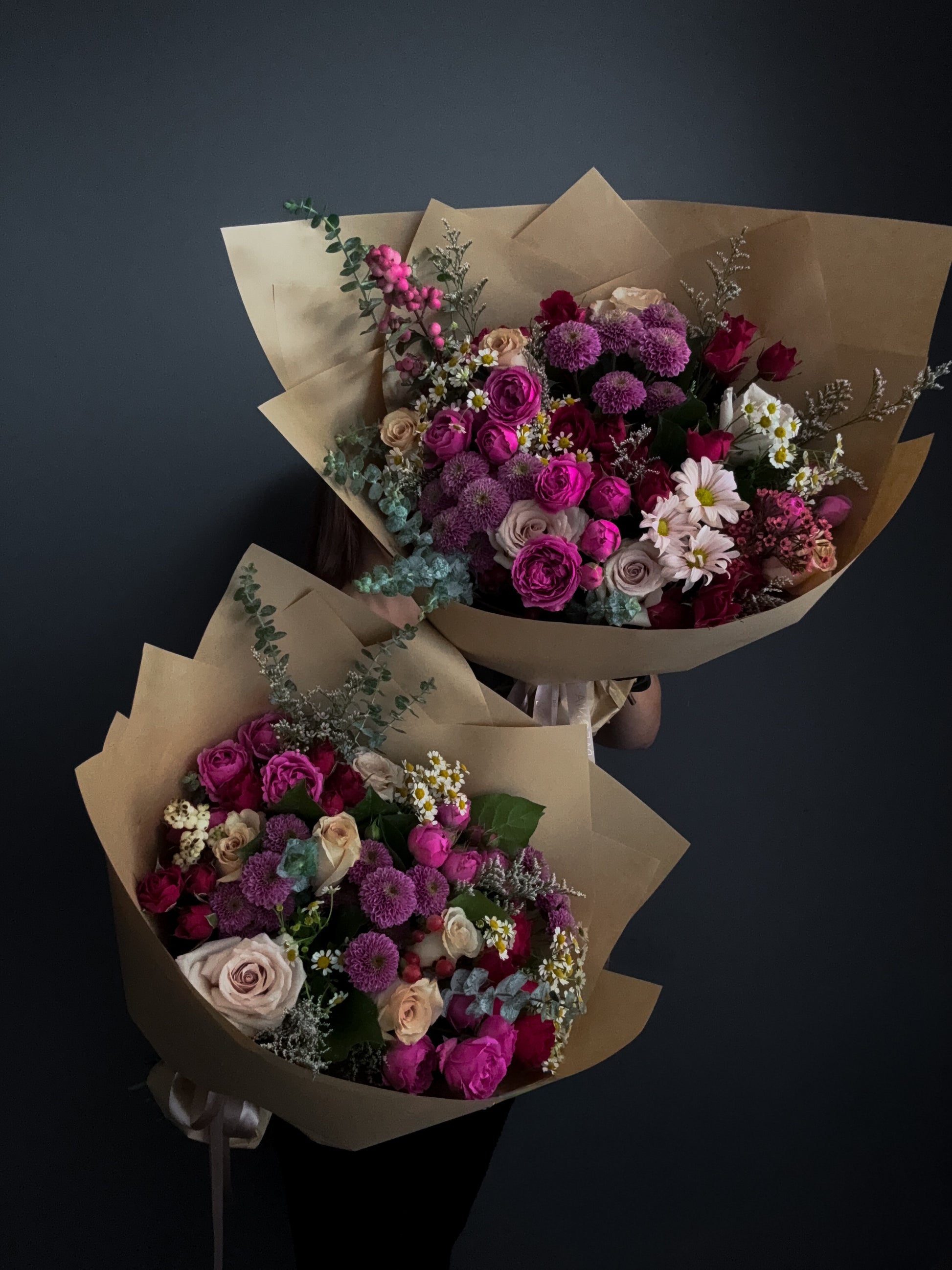 We are working with the fresh seasonable flowers, so the composition of the bouquet may a bit vary. Even in the absence of a seasonal flower - we try to collect a bouquet as similar as possible. If a particular flower is important for you - please, contact us with the note and we will agree on the options with you.