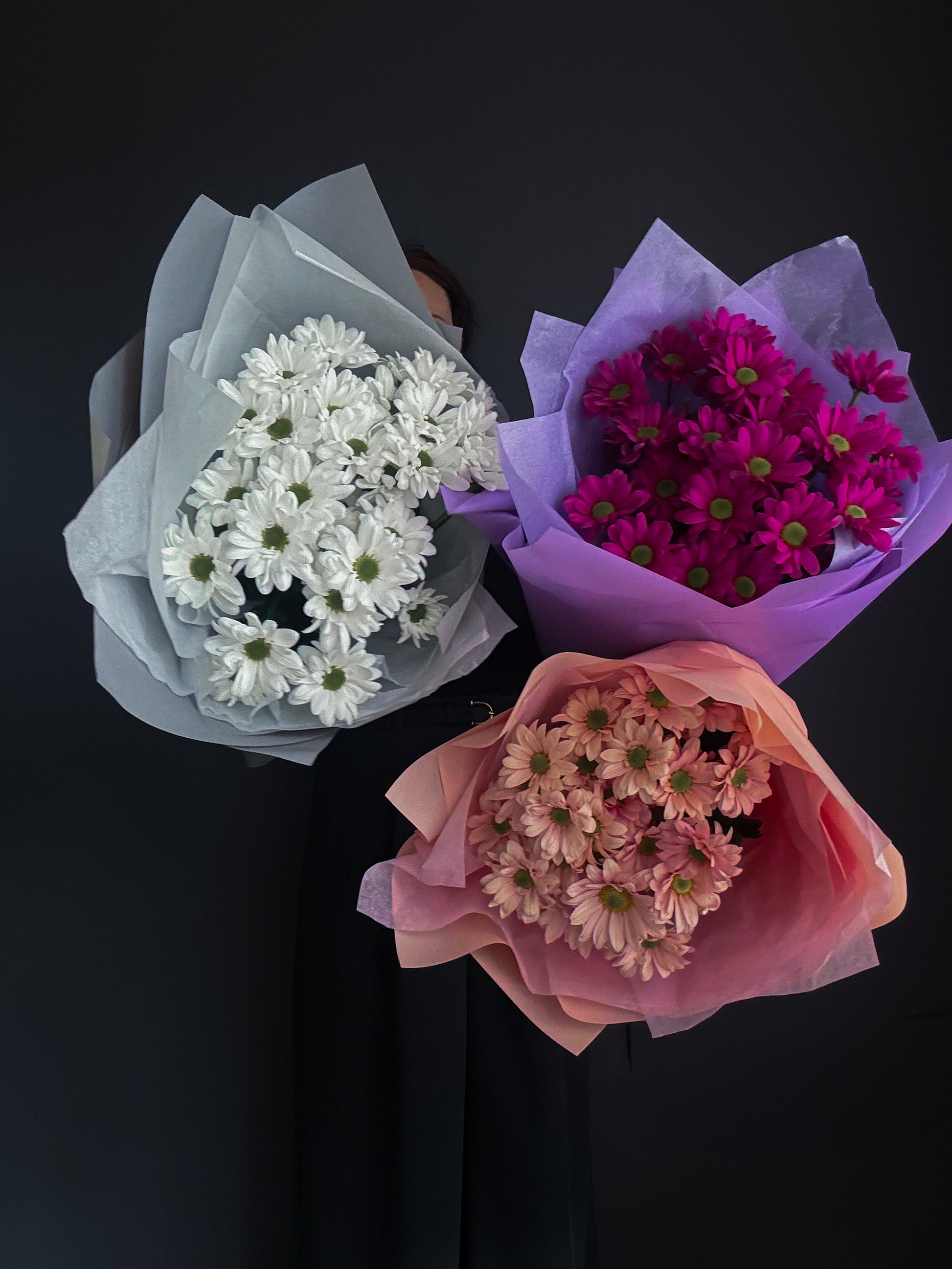 We work only with fresh, seasonal flowers. Sometimes blooms arrive in tight buds to ensure longer vase life — this can slightly affect the volume at first. But our florists always add extra elements to make your bouquet as wide and full as possible.