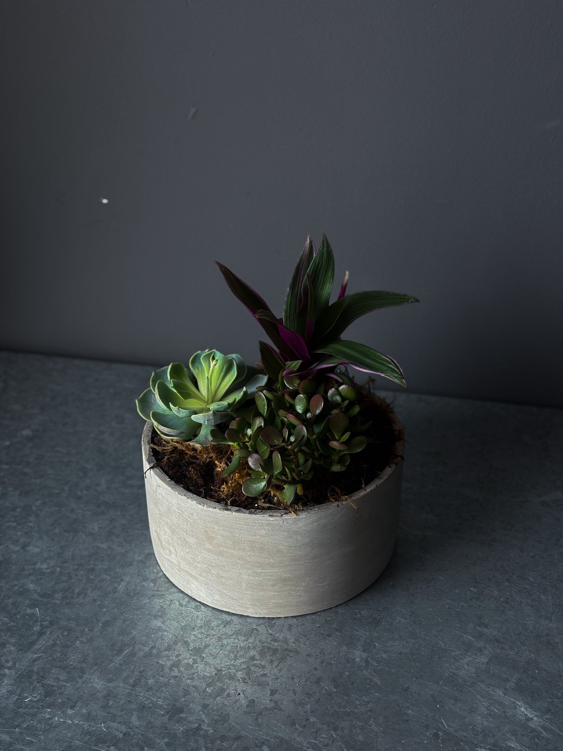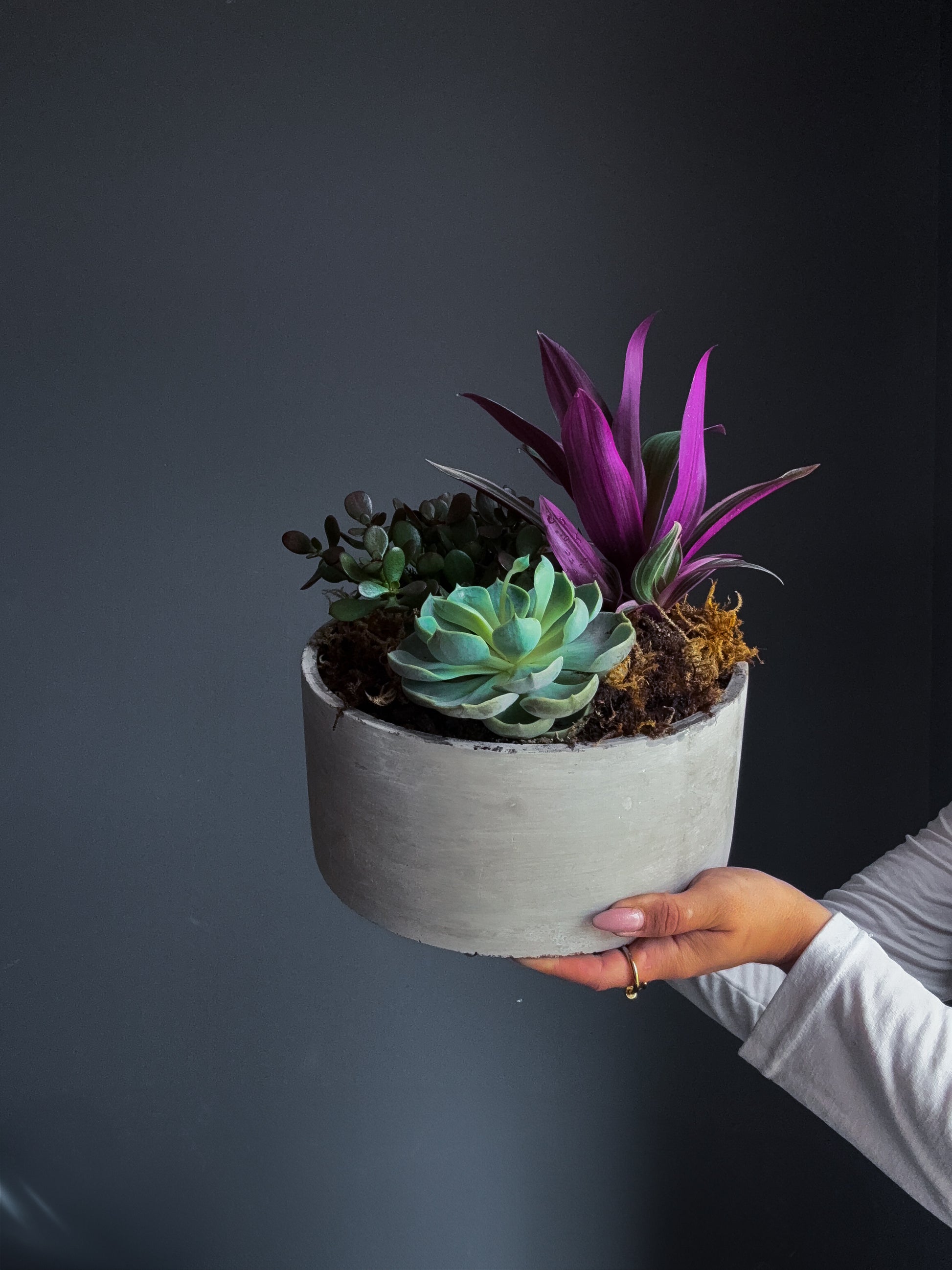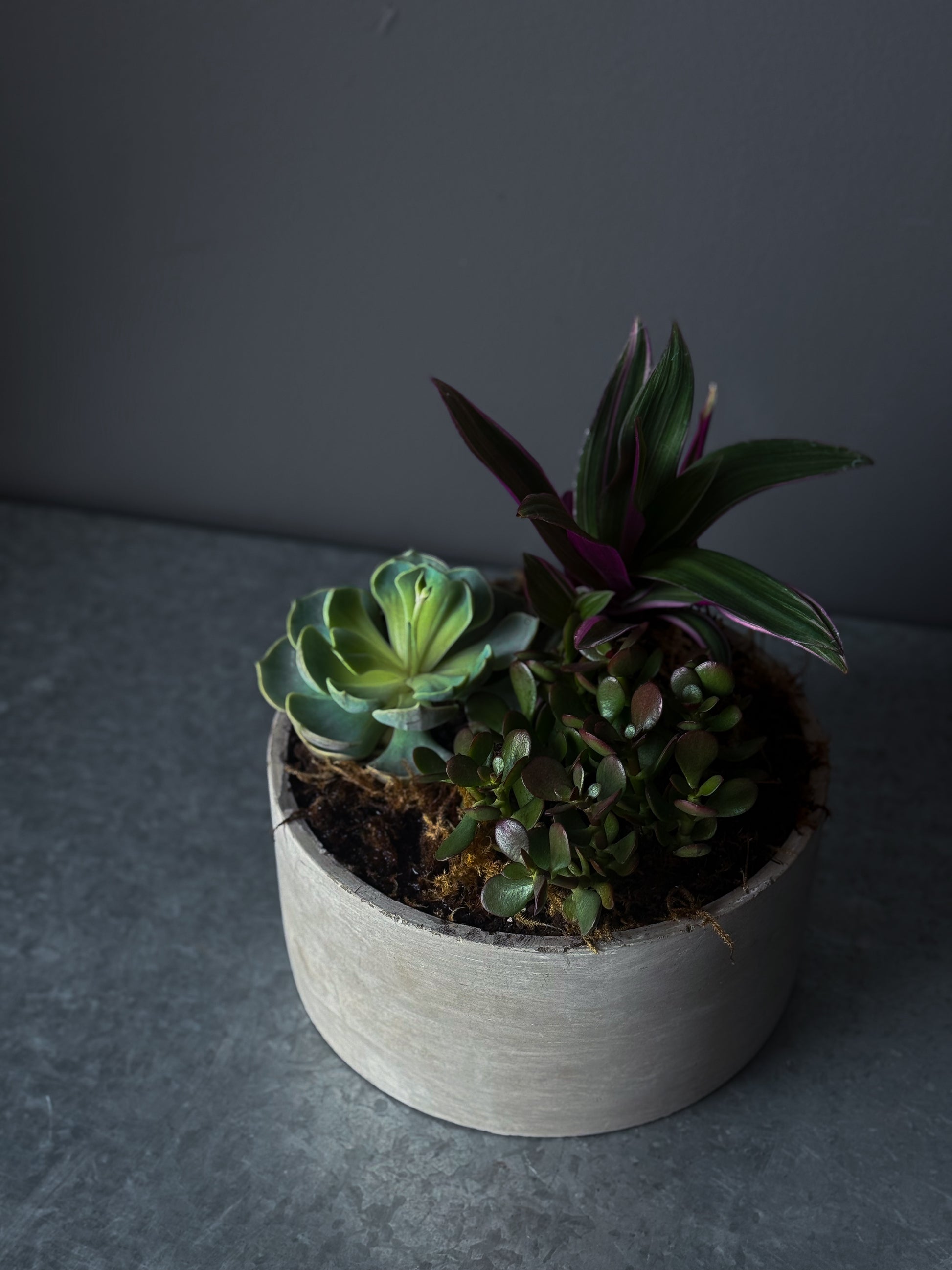A hand-picked mix of charming succulents in one pot! This low-maintenance arrangement combines textures and tones to create a mini desert garden — perfect for desks, windowsills, or gifts.